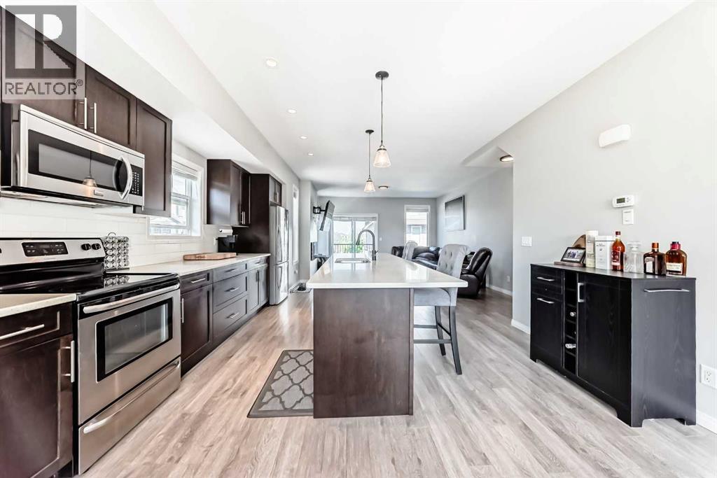 Welcome to Williamstown and this stunning end-unit townhouse offering 2 bedrooms and 3.5 bathrooms.On the ground level, you’re greeted by a spacious den/office that can easily be converted into a third bedroom or a quiet sitting room. This level also features a convenient 3-piece bathroom.Head upstairs to your open-concept main living area, filled with natural light from the extra windows that only an end unit provides. The kitchen is a chef’s delight with granite countertops, stainless steel appliances, and a large island for meal prep or casual dining. The adjacent dining area makes hosting family and friends effortless. The living room is impressively large—perfect for a sectional, recliner, and your big-screen TV above the cozy electric fireplace. A stylish 2-piece powder room completes this level.Upstairs, the primary suite includes a walk-in closet and a private 4-piece ensuite. Down the hall, you’ll find a massive second bedroom, another full 4-piece bathroom, and the convenience of upstairs laundry.Keep your vehicles clean and warm in the double attached garage.Bonus: the carpets will be replaced prior to possession! (id:51913)