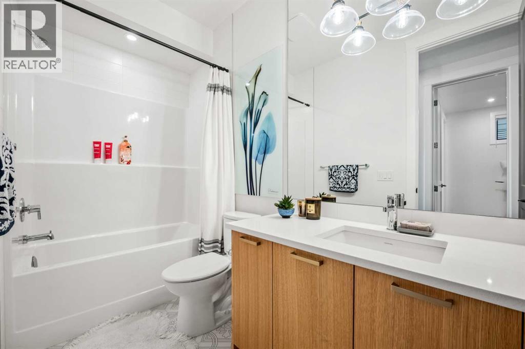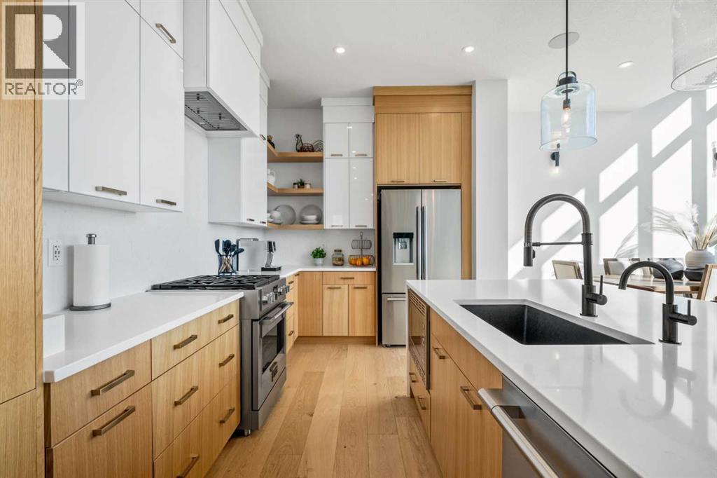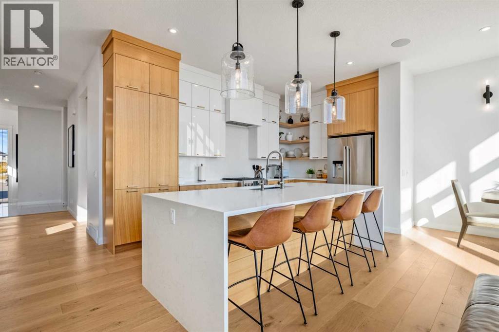 Welcome to 71 Creekstone Way SW, an exceptional AWARD WINNING residence that combines MODERN DESIGN, ELEVATED FINISHES, and FUNCTIONAL VERSATILITY in one of Calgary’s fastest-growing southwest communities. Thoughtfully designed for both everyday living and future flexibility, this stunning WALK-OUT HOME offers over 2,600 SQ. FT. ABOVE GRADE with remarkable craftsmanship throughout.Walking in, you’re greeted by 10-FOOT CEILINGS, OPEN RISER STAIRS, and GLASS RAILINGS, creating a sophisticated yet inviting atmosphere. The main floor features a BRIGHT, OPEN-CONCEPT LAYOUT with spacious living and dining areas anchored by a sleek fireplace. Surrounding the space are FLOOR TO CEILING COMMERCIAL PREMIUM WINDOWS WITH POWER BLINDS, allowing natural light to fill the home throughout the day.The CHEF’S KITCHEN is a true centerpiece, featuring FULL-HEIGHT CABINETRY, a JENAIRE FRIDGE, and ELEGANT FINISHES that seamlessly connect to the dining and living spaces. A PRIVATE OFFICE on the main floor adds convenience and functionality to the modern layout.Upstairs, the PRIMARY SUITE serves as a luxurious retreat with 10-FOOT CEILINGS, CUSTOM BUILT-IN CABINETRY, and a SPA-INSPIRED ENSUITE complete with dual sinks, a large glass shower, and a CUSTOM WALK-IN CLOSET designed for organization and style. Two additional bedrooms, a full bathroom, a cozy LOFT WITH BEAUTIFUL VIEWS, and an UPPER-LEVEL LAUNDRY ROOM provide both comfort and practicality for the entire family.The FULLY FINISHED WALK-OUT BASEMENT featuring a GYM with PREMIUM GYM FLOORING, 4TH BEDROOM, REC ROOM AND BAR SIN ROUGH IN. Head outside to the EXPOSED CONCRETE PATIO and FULLY LANDSCAPED BACKYARD complete with a GARDEN SHED.This home includes numerous thoughtful upgrades such as a HEATED GARAGE WITH EPOXY FLOORING, MUDROOM LOCKERS, a WATER SOFTENER, WATER FILTRATION SYSTEM, GARBURATOR, SONOS SYSTEM WITH BUILT-IN SPEAKERS, and a HEAT RECOVERY VENTILATOR for improved energy efficiency.Outside, enjoy peaceful eveni ngs overlooking the yard with easy access to PARKS, PATHWAYS, AND LOCAL AMENITIES within the PINE CREEK / CREEKSTONE community.With its WALK-OUT BASEMENT, PREMIUM FINISHES, and FUTURE INCOME POTENTIAL, 71 Creekstone Way SW delivers an exceptional combination of LUXURY, FUNCTIONALITY, AND LIFESTYLE—all in a location designed to grow with you. Schedule your private tour today to experience this remarkable home in person. (id:51913)