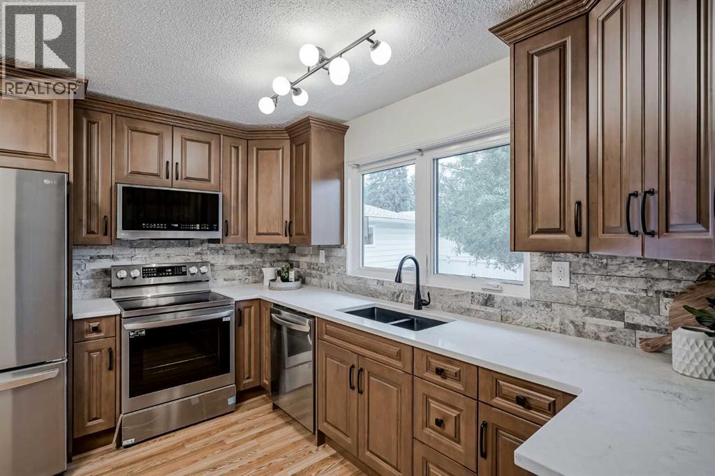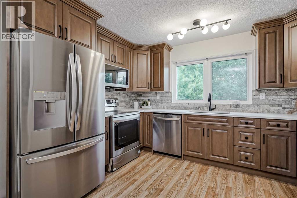 On a quiet cul-de-sac in Huntington Hills, where the streets bend toward Nose Hill and the prairie sky opens wide, stands a home built to hold both comfort and possibility. This bungalow carries 1,259 square feet above grade, with three bedrooms upstairs and two and a half baths, spread across a pie-shaped lot that gives more space than you’d expect.The main floor is open and bright, the kind of space where light spills through new windows and settles across rooms shaped for family and friends. The kitchen has been remade with maple cabinets, granite counters, and stainless steel appliances, a place meant for both the daily rhythm of meals and the gathering of company. The primary bedroom keeps a private corner with its own updated two-piece ensuite.Downstairs, a separate entrance opens to rooms that stretch out with ease. Two large living areas, a wet bar, and a stone fireplace anchor the basement, offering warmth and space enough for any season of life.Out back, the oversized double garage waits for those who like their hands busy with tools or engines, and the concrete pad with gated access is ready for an RV or the long trips it promises. The yard is broad, private, and edged with trees—a place for children to play, for dogs to run, or for nothing more than the quiet of an evening.Schools, parks, and the rush of the city sit nearby, yet here there is still space to breathe. This is a home that has been cared for, refreshed, and made ready for the next story it will hold. (id:51913)