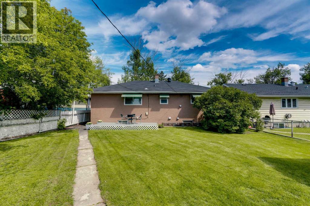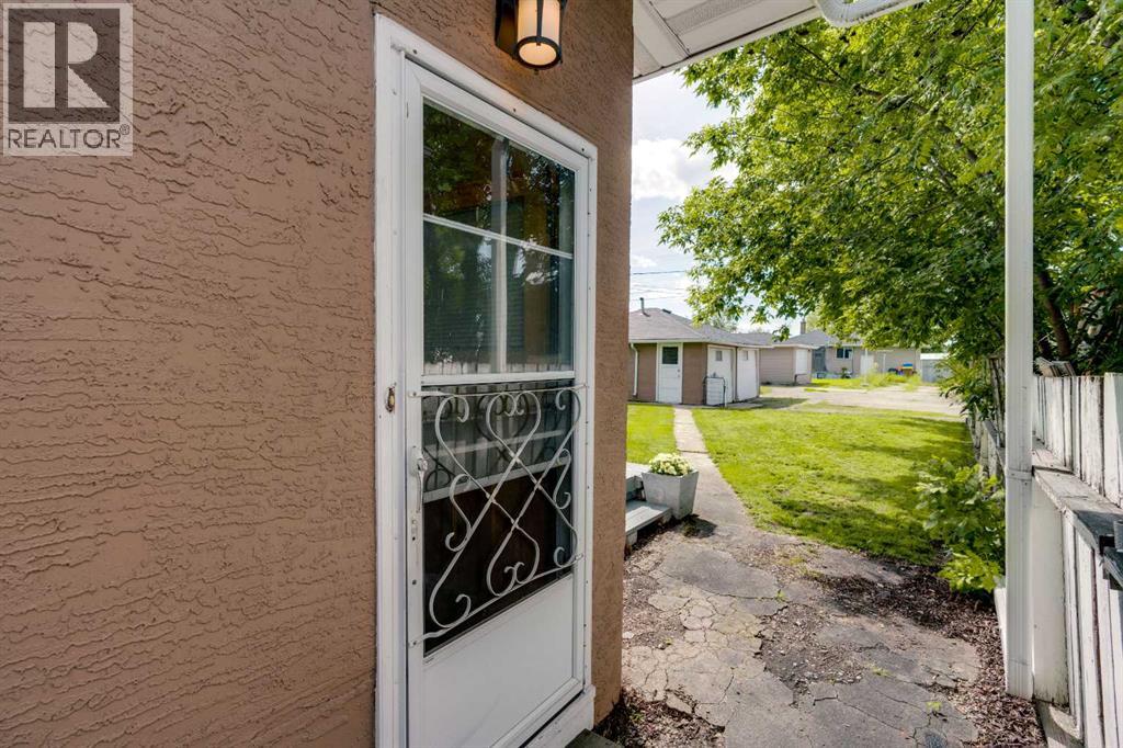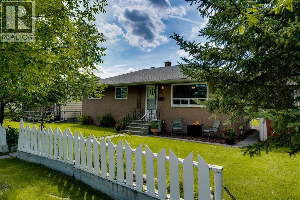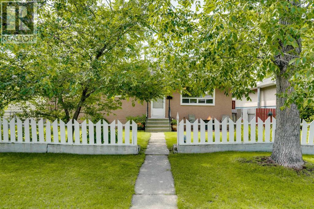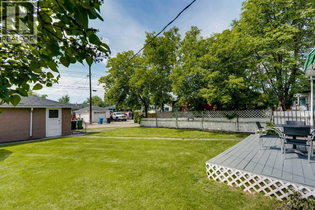 This well-maintained bungalow offers nearly 1,000 sq.ft. of living space and sits on a 50x120 ft. lot on a quiet street. Featuring original hardwood floors throughout, the home boasts a bright and spacious front living room with a large picture window, a kitchen with an eating area, and tasteful updates including a subway tile backsplash and refreshed countertops. Three generously sized bedrooms and a fully renovated bathroom with a soaker tub complete the main level. The basement is undeveloped and with a separate side entrance, presents excellent potential for a future secondary suite (with City approval). Outside, you’ll find a large west facing backyard with an oversized 21x23 ft double garage, additional parking, deck, and a mature, treed front yard for added privacy. Recent upgrades include; Roof on house and garage (2024), Eavestroughs on house (2024), Hot water tank (2024), Freshly painted exterior stucco (2023). Garage is currently rented for $300.00 per month. This move-in ready home offers both character and potential, in an ideal location close to shopping, transit, and with quick access to Deerfoot and Glenmore Trail. Don’t miss the opportunity to make it yours! (id:51913)