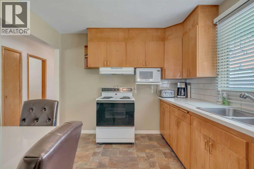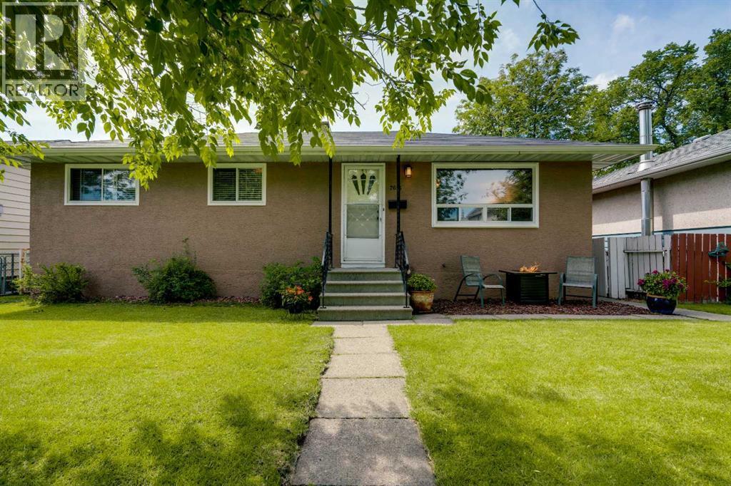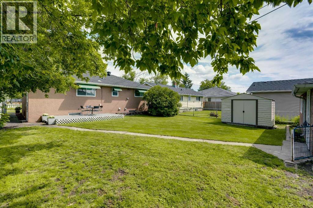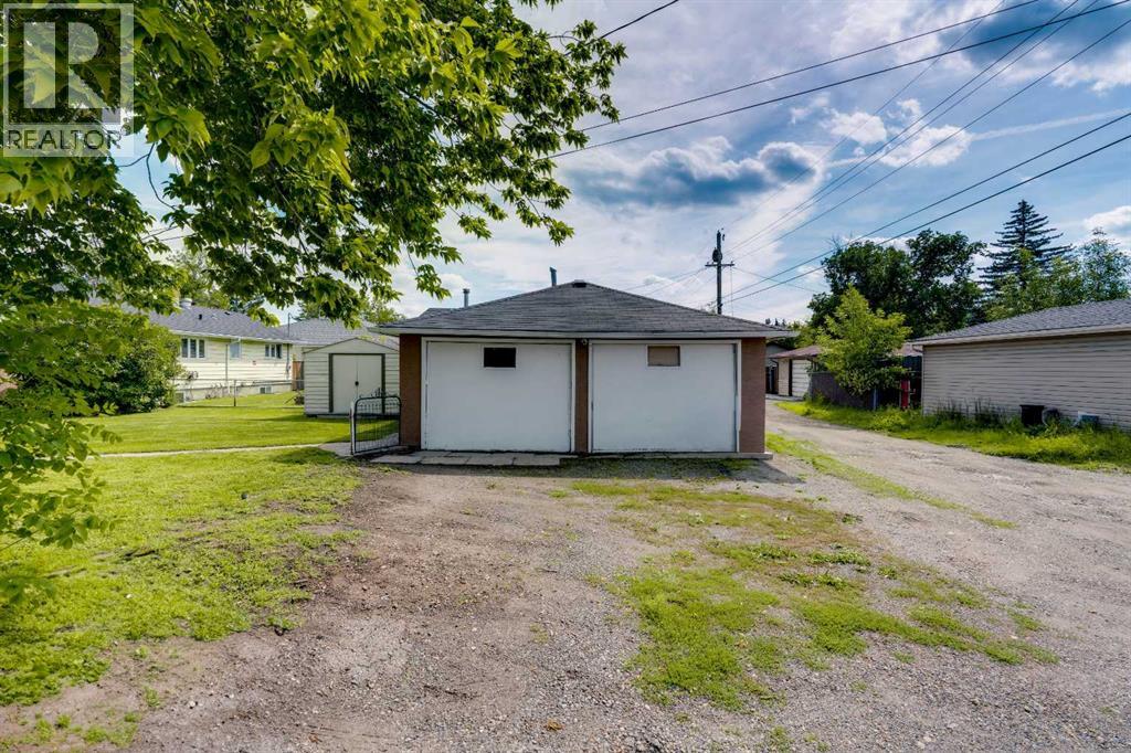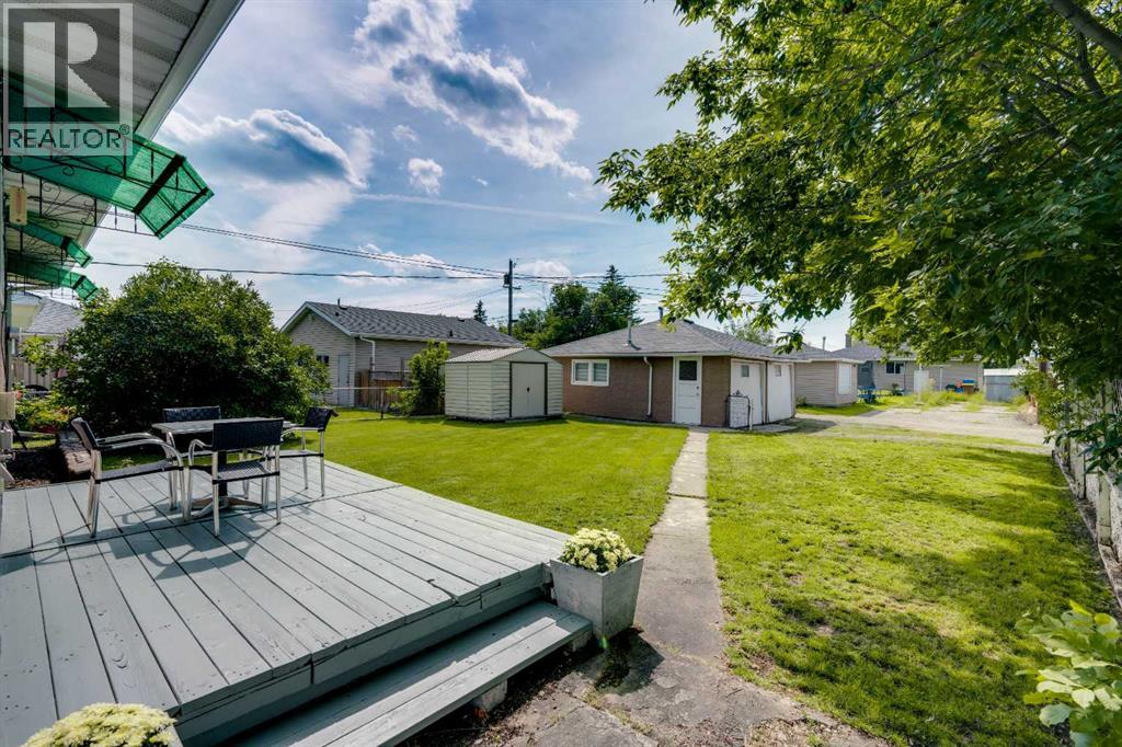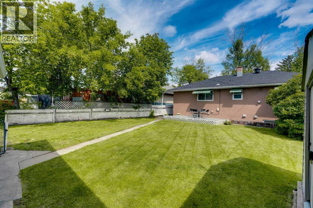 This well-maintained bungalow offers nearly 1,000 sq.ft. of living space and sits on a 50x120 ft. lot on a quiet street. Featuring original hardwood floors throughout, the home boasts a bright and spacious front living room with a large picture window, a kitchen with an eating area, and tasteful updates including a subway tile backsplash and refreshed countertops. Three generously sized bedrooms and a fully renovated bathroom with a soaker tub complete the main level. The basement is undeveloped and with a separate side entrance, presents excellent potential for a future secondary suite (with City approval). Outside, you’ll find a large west facing backyard with an oversized 21x23 ft double garage, additional parking, deck, and a mature, treed front yard for added privacy. Recent upgrades include; Roof on house and garage (2024), Eavestroughs on house (2024), Hot water tank (2024), Freshly painted exterior stucco (2023). Garage is currently rented for $300.00 per month. This move-in ready home offers both character and potential, in an ideal location close to shopping, transit, and with quick access to Deerfoot and Glenmore Trail. Don’t miss the opportunity to make it yours! (id:51913)