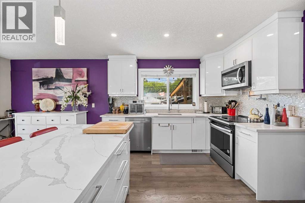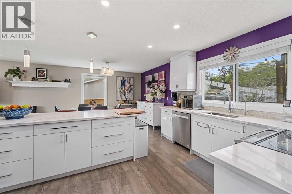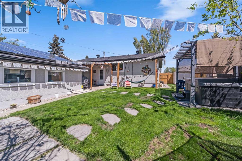 Welcome to this gorgeous, fully renovated family home with a beautiful west-facing backyard and an oversized heated garage, nestled on a quiet close in the heart of mature, R-C2 zoned Acadia! This stunning bungalow boasts nearly 2200 SF of developed space, meticulously renovated from top to bottom, featuring a brand-new kitchen, flooring, windows, doors, roof, and a 4.88 kW fully functional solar system. The chef in the family will adore the gourmet kitchen, complete with a large window overlooking the backyard, a massive center island, quartz countertops, ample full-height cabinets, and upgraded appliances. The spacious primary suite offers a beautiful walk-in closet and a luxurious ensuite with a walk-in glass shower. The second bedroom conveniently accesses another beautifully designed full bathroom. The developed lower level is perfect for entertaining and relaxation, featuring a huge family room, a den, an extra bedroom, a large 4-piece bathroom, new epoxy floors, and abundant storage options. Step outside to the west-facing backyard, a true family playground with a private shaded area for relaxation, a firepit spot, space for a trampoline, and a hot tub area, perfect for unwinding at the end of the day. Plus, the oversized detached heated garage ensures your vehicles and belongings stay safe and warm during the colder months. This prime location is close to schools, parks, playgrounds, walking and bike paths, and all amenities. This is a complete family home, ready to create new memories. Don’t miss out—book your viewing today! (id:51913)