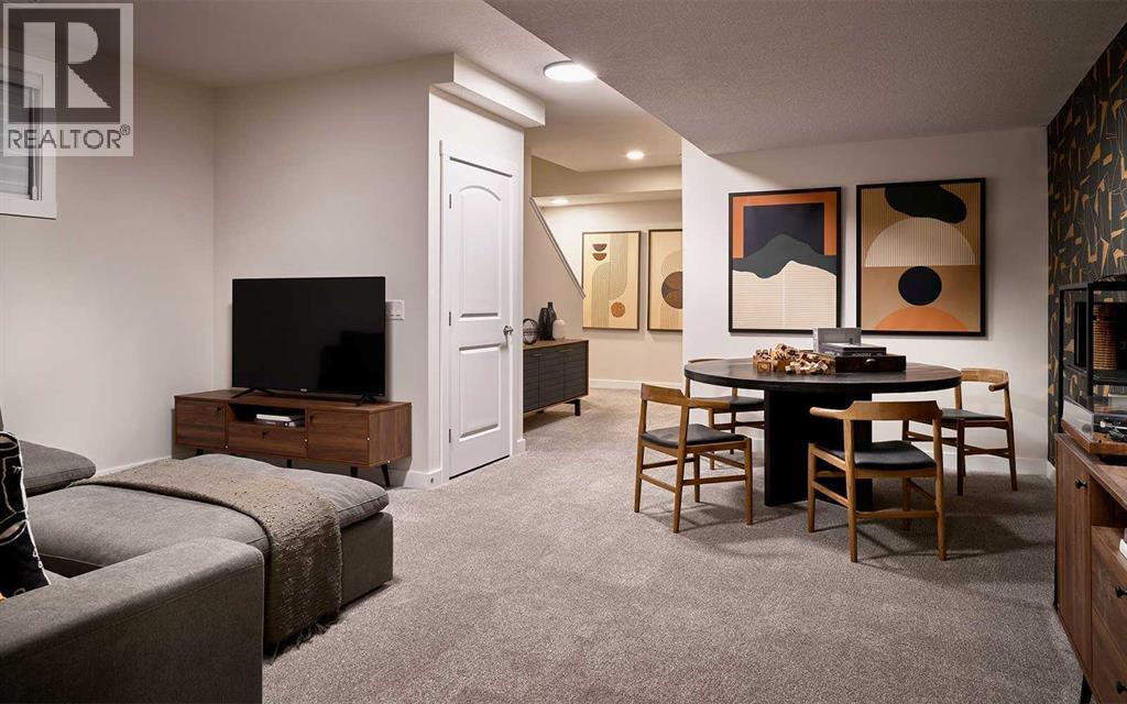 An incredible opportunity to own a brand new home, the Carlisle II in desirable Silver Spruce! This home is situated on a bright and sunny oversized pit lot spanning 4,500 ft2 in size! Featuring 4 bedrooms (3 up, 1 down), 3.5 bathrooms and two living spaces + a fully legal one bedroom basement suite, this property is perfect for investors, multi-generational living or those that want to decrease their costs by renting their basement! Built by Brookfield Residential, the Carlisle II model is a stunning home with 1,860 square ft. of living space above grade. This open concept main floor has 9 ft. ceilings and extended height cabinets and a large island with a gourmet kitchen package including chimney hood fan, gas range and a built-in microwave. The main floor features a large great room with plenty of natural light and has an open concept design that is perfect for entertaining. Luxurious and resilient LVP flooring flows throughout the main level, making it perfect for those with children and pets. The main level is complete with a flex space that is perfect for a home office or children's play space with sliding doors for privacy, and a 2 pc bathroom. The upper level features a central bonus room that separates the primary bedroom from secondary rooms. Enjoy the luxury of the large primary suite with a private balcony with views to the adjacent green space and a beautiful ensuite bathroom with dual sinks and a walk-in shower. Two more bedrooms, a full bathroom and upper level laundry room complete the second level. The basement has a fully legal one bedroom suite with a full kitchen (appliances included), dining / living area, bedroom, full bathroom and private laundry. The legal suite is accessed by its own private side entrance - completely self contained. This home is brand new and upgraded both inside and out with spindle railings, knockdown ceilings, BBQ gas line and an expansive pie lot providing endless possibilities for your outdoor space! Complete with full Alberta New Home Warranty + builder warranty, ensuring you can purchase with peace of mind! *Please note: Photos are from a show home model for representation purposes and are not an exact representation of the property for sale. (id:51913)
