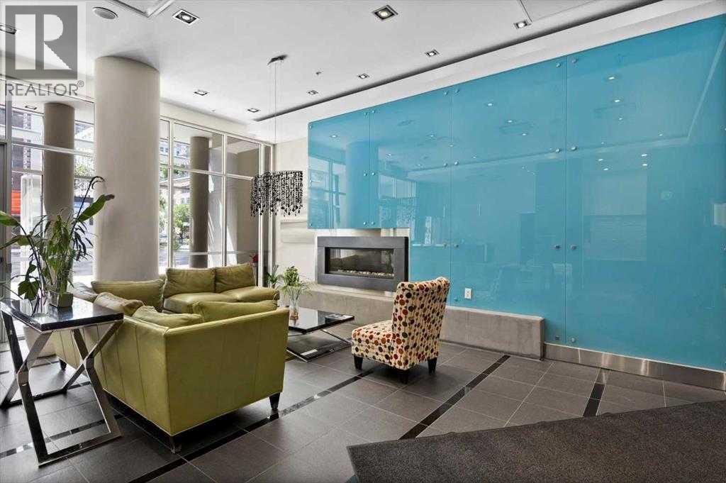 Downtown Condo with Stunning Bow River & Mountain Views Step into this executive 2-bedroom condo that offers the best of urban living with panoramic views of the Bow River and the majestic mountains. Located just steps from Eau Claire, Prince’s Island Park, and the vibrant downtown core, this home puts you within walking distance of top-tier restaurants, shopping, and the scenic Bow River Pathway.Inside, the open-concept floor plan maximizes space and functionality, complemented by premium finishes throughout. Features include sleek modern slab cabinets, engineered hardwood floors, chic glass tile accents. Cozy up by the gas fireplace with its unique lit glass crystals, or enjoy the breathtaking views from floor-to-ceiling commercial-grade windows. The granite countertops, acoustic underlay for extra soundproofing, and heated underground parking ensure both style and comfort.Residents of this exclusive building enjoy concierge services, including dry cleaning pick-up, access to a well-equipped fitness center, and plenty of visitor parking for guests.This condo truly offers the ultimate in convenience, and it’s move-in ready! Condo comes "as-is, where-is". Don’t miss out—schedule your private showing today and experience downtown Calgary living at its finest! (id:51913)