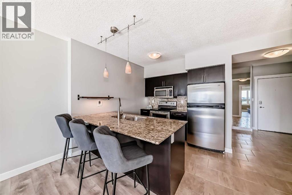 Welcome to this MOVE IN READY, exceptionally spacious, sun-filled 1 BEDROOM + DEN condo in the heart of Haysboro. This condo features high quality Rivera laminate flooring with premium underlay, a beautifully maintained kitchen with stainless steel appliances, GRANITE countertops and a generous island - perfect for entertaining! Enjoy the convenience of IN-SUITE LAUNDRY, ON DEMAND HOT WATER, and an unassigned heating underground parking stall with bike storage. The oversized bedroom features a generously sized closet. The well-appointed 4-piece bathroom features an extended vanity, granite counters, and a tub/shower combo. The generous DEN SPACE is a true bonus—ideal for a home office, guest room, second living area, or even a formal dining space. BUILDING AMENITIES include weekday concierge service, 24-hour security, three high-speed elevators, and a 17th-floor SUNROOM TERRACE with panoramic views. Enjoy unmatched convenience with DIRECT PARKADE ACCESS to Save-On-Foods, Tim Hortons, and the “Shops at Heritage,” plus the Heritage LRT Station just across the street. Surrounded by bike paths, Glenmore Reservoir, Fish Creek Park, major shopping centers like Chinook Centre, and South Centre, and countless dining options, this is the ultimate blend of comfort, style, and location! (id:51913)