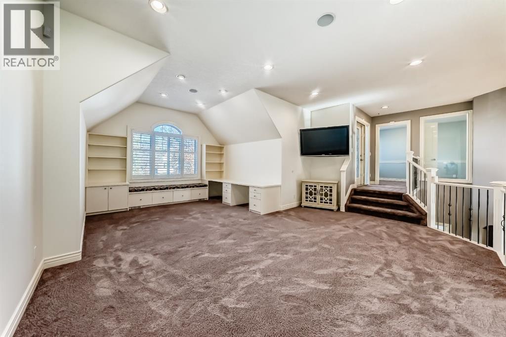 Elegance! This Evergreen Estates home features numerous upgrades and backing onto green space, pathway, mature trees and privacy. Stately curb appeal welcomes you inside. Executive air conditioned 2 storey, bonus room and a functionally developed walkout on a quiet cul-de-sac. Extensive upgrades, many built-ins, speakers and plantation shutters throughout. MAIN FLOOR: Hardwood and tile with 9' ceilings. Office or den. Large dining room. Fully renovated gourmet kitchen with cherry wood cabinets, breakfast bar, granite countertops, stainless steel appliances, sink in large island with eating area open to an inviting family room, fireplace and custom built in shelving on the feature wall. French door leading out to deck with metal railings & glass panels in south facing back. The deck has stairs leading to the backyard. Laundry and mudroom with custom closet lockers and a two piece powder room. UPSTAIRS: The staircase with painted railings and iron rod spindles lead up to a very large bonus room with some built ins and charming window seat. Enjoy the large primary bedroom with a five piece ensuite bath, and a spacious walk-in closet. There are also two generous sized bedrooms and a 4pc main bath. Another den or office with a cozy balcony overlooking the front of the home. DEVELOPED DOWN: Walk out with bright large windows leading to a covered patio and a professionally landscaped, private yard. In-floor heating. Large recreation room, bedroom, 3 piece bathroom and very large storage room. Excellent space for a mature child or mother-in-law. Underground sprinklers, mature trees, gazebo and privacy hot tub. Oversized double garage with good storage space and raised ceiling. From the back gate walk or bike to our amazing Fish Creek Provincial Park (approximately 500 steps away)! This is one of the most coveted areas in the city, with local amenities and excellent schools nearby. Transit accessible and a short drive to the Shawnessy shopping area. Great proximity to Ma cleod Trail and Stoney Trail put the rest of the city in easy driving distance, and the location provides easy access to the Rocky Mountains! All major amenities are only minutes away. (id:51913)