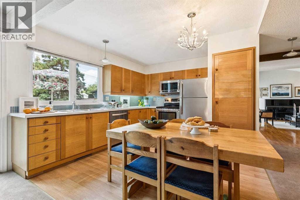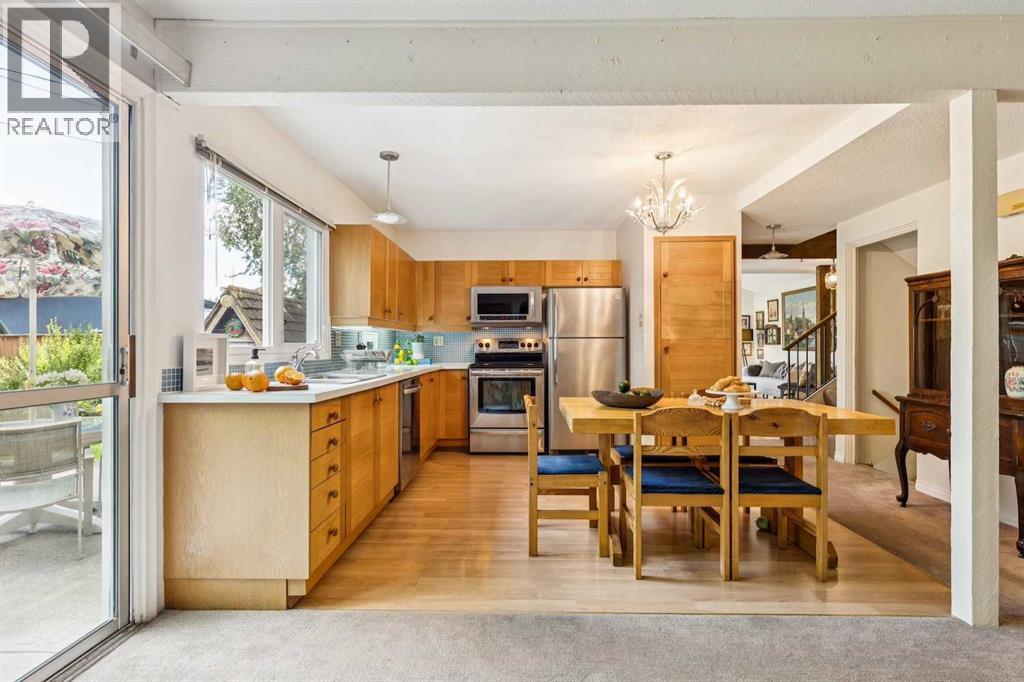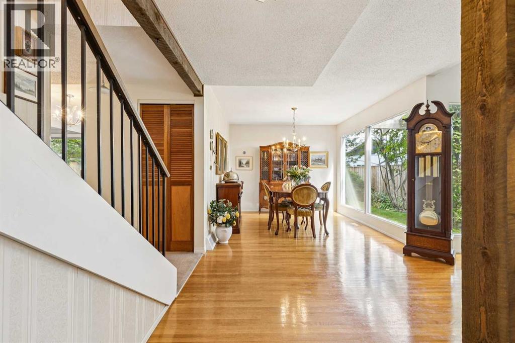 Welcome to a home that blends comfort, character, and an unbeatable Lake Bonavista lifestyle — where families enjoy year-round lake access, top-rated schools, and a welcoming sense of community. Close to 1800 sq. ft. of living space, this thoughtfully designed two-storey has room for everyone to gather, grow, and make lasting memories. Step into a sun-filled living and dining area where soaring 12-foot vaulted ceilings and 18-linear feet of windows create a warm, inviting space for family celebrations or cozy evenings at home. The kitchen is designed for both everyday living and effortless entertaining, featuring a mosaic tile backsplash, stainless steel appliances, under-cabinet lighting, a pantry with roll-out drawer, lazy susan, and five additional drawers — everything a busy household needs. A window over the sink, replaced in 2005, frames views of the backyard. Just off the kitchen, the family room offers a perfect place to unwind, complete with a gas insert in the classic brick fireplace surround, wood wall paneling, and updated carpet and underlay (2018). Sliding patio doors lead to a private concrete patio with a gas line for your BBQ — the perfect setting for family dinners under the stars. A convenient two-piece bathroom off the garage entry keeps everyday routines simple.Upstairs, four bedrooms with hardwood flooring provide comfortable retreats for the whole family. The primary suite is a peaceful escape with two closets and an ensuite featuring a make-up counter, sink, private water closet, and shower. A double linen closet, a bedroom with double doors, and windows replaced in 2005 add practical touches. The fully developed basement extends your living space with a wood-burning fireplace, three-piece bathroom, laundry, storage, and versatile rooms — including one with a closet that needs a window be to a legal bedroom. Outside, a brick and stucco exterior pairs with mature evergreens for privacy and a charming crab apple tree. The roof was replaced in 2019, the fence is new as of 2020, and exterior lighting has been updated. A double attached garage, and an extra front parking pad complete this wonderful family home. An unbeatable location steps to the Promenade for groceries, shops & restaurants with medical facilities adjacent.This is your chance to create a lifetime of memories in Lake Bonavista — where neighbours become friends, and every season brings something to enjoy. (id:51913)