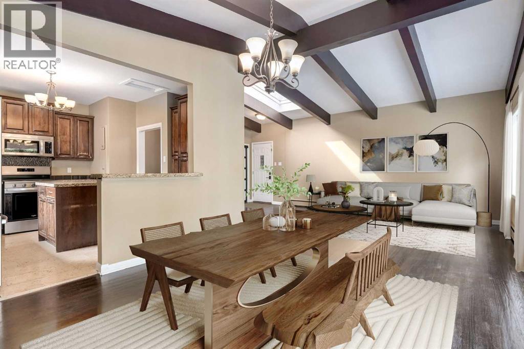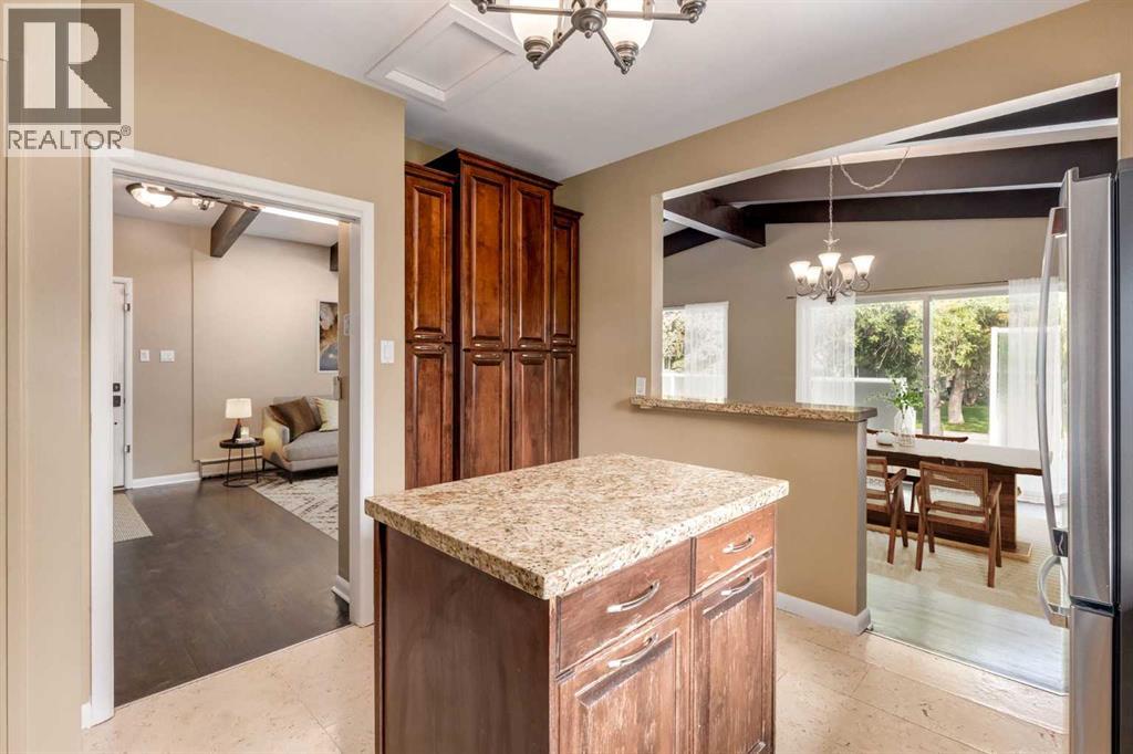 This character filled 4-level split in desirable Chinook Park offers 4 bdrms, 3 full baths and almost 2,300 sq. ft. of well-appointed living space and blends timeless mid-century appeal with modern updates. This charming home sits on a great sized lot, it exudes curb appeal as it's cladded in Hardie board siding and framed by mature trees. The expansive front deck is equipped with privacy screens that make it the ideal spot to sip morning coffee, eat alfresco or unwind after work. The inviting main floor boasts a vaulted ceiling with exposed wood beams and skylight. Hardwood flooring flows seamlessly throughout the living room and dining area. Large windows flood the space with natural light, creating a welcoming atmosphere. The chef inspired kitchen features tons of cupboard/cabinet space, granite countertops, s/s appliances (including a gas stove), cork floor and a functional layout which is great for day-to-day living as well as entertaining. Upstairs, you’ll find a primary retreat complete with built-ins and a private 4pc ensuite with deep soaker tub. A 4pc bath and second great sized bdrm finish this level. *The lower level is mostly above grade and features large windows so it's bathed in natural light and IS INCLUDED IN ABOVE GRADE SQ FT * - here you will find two ample sized bdrms, a 3pc bath, and rear door with direct access to the landscaped backyard. A spacious and versatile family room rounds out the lowest level - it's perfect for relaxing nights as well as lively get-togethers with built-in cabinetry offering storage and display space - it would make an excellent media/movie room, playroom or home gym. You will also find a laundry room and a bonus hobby/workshop room which gives you even more functional space for DIY projects/creative pursuits. Out back, the sunny south-facing yard is ready for your enjoyment with wooden garden boxes for green thumbs and an interlocking brick patio perfect for BBQs and summer gatherings. A single car garage connecte d by a breezeway to the front door makes bringing in groceries...'a breeze'. This home is excellently located for both commuters and weekend adventurers, offering quick access to downtown and major roadways including Glenmore Trail, Elbow Drive, and 14th Street. There’s no shortage of activities to take part in year-round nearby - you can walk, bike, and hike the trails of Weaselhead Flats or check out the water/paths at Glenmore Reservoir. Take a trip back in time at Heritage Park, or enjoy the boutique shops, cozy cafés, and inviting patios at Glenmore Landing. Schools, parks and Rocky view Hospital are also close by. This gem still has unlocked potential so you can create a space that reflects your style and vision in a seriously fabulous neighbourhood. This is your chance to secure a property that combines timeless style, an excellent location, and a strong sense of community in one of Calgary’s most beloved neighbourhoods and make it truly your own. (id:51913)