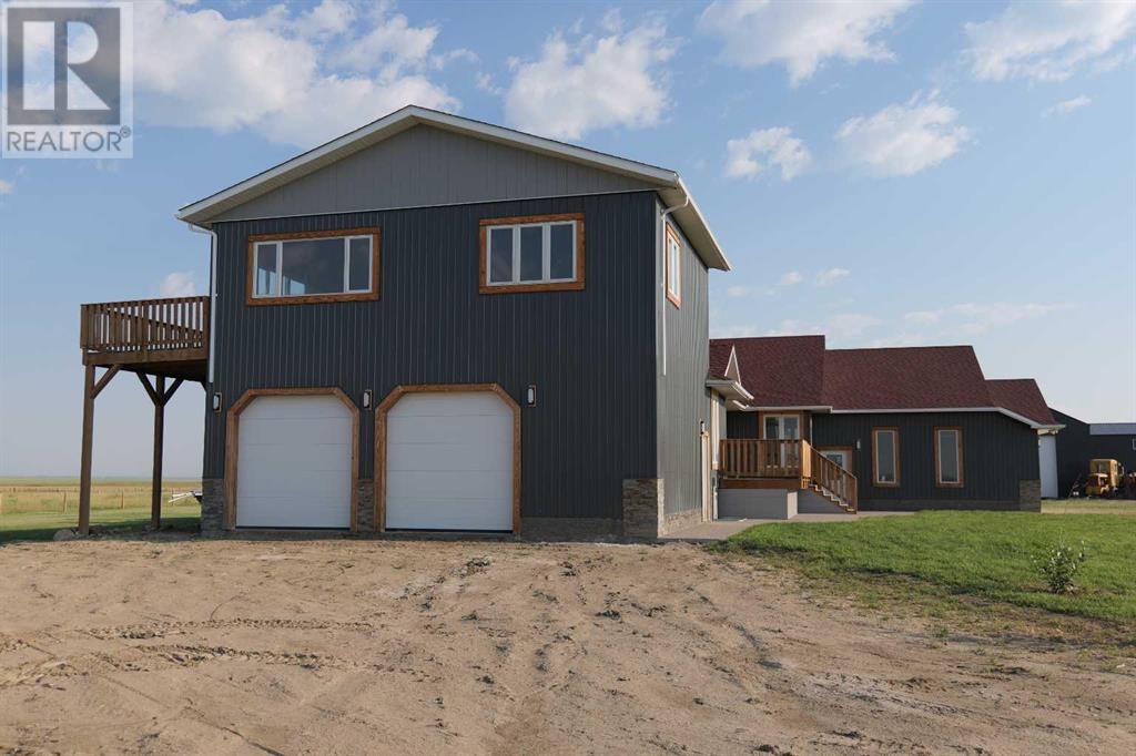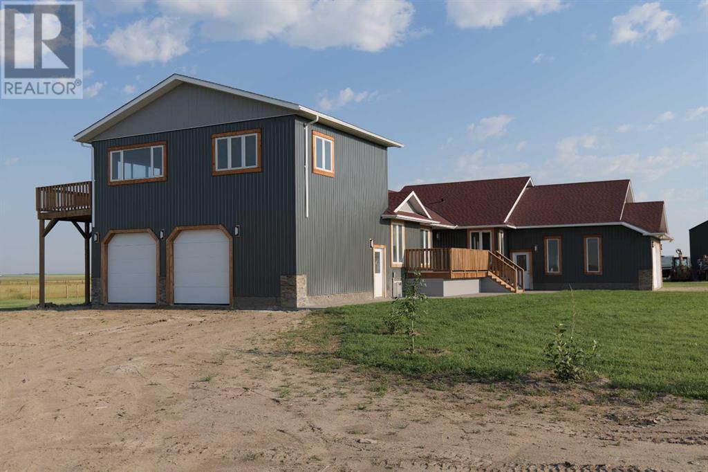 Large house, Large shop, Large property! Not very often does a property of this caliber come up for sale. The land consists of 108 acres of natural never broke grassland that is fully fenced and cross fenced. At 1860 square feet the main area of the house will accommodate a large family or entertaining friends. An open floor plan, Vaulted ceilings, 3 bedrooms, 1.5 baths (plus en suite), family room, sitting room, fireplace, breakfast nook and kitchen make up some features of the main floor. On the west side of the house there is a 350 sq ft fully enclosed sun room with 4 skylights. Attached to the sun room is a 420 square foot deck. The front entry also has a partially covered 250 square foot deck. Down stairs has been framed with an additional 2 bedrooms, also a 3rd bedroom is possible. There is a 750 square foot double over sized attached garage on the south side of house. You can access the main level of the home from this garage. Above this garage is an additional 750 sq foot vaulted area, with deck , which is ample room for any purpose you might require. Facing east there is a triple over sized attached garage. From this space you can access the basement of the home. As you can see there are multiple options for this home; anything from hobbies, collections, home office spaces, even possible shared accommodations. Just north of the home sits the shop. At 3300 square feet on the main level and 2000 square feet on the upper level, the sky is the limit with possibilities. So whether you are into horses, cows, pigs, chickens, cars, trucks or a home business, this place is for you. Being that this property is still being worked on, there are plenty of options when it comes to finishing it out and possession. Call your favorite agent today to book an appointment!!! 2023 renovations. -All the ceilings in the home have been scraped and re textured. The whole house has been painted.The roof gables have been done with smart board. Stone corners on both attached garages. Exposed aggregate sidewalks. New exterior lights. Power, water,sewer,gas all ran to the shop. New for 2025!!! All new flooring through main floor. Masive 4 zone septic field installed. More lanscapimg has been done. A large garden area has been put in. Heavy duty commercial door opener in the shop. (id:51913)